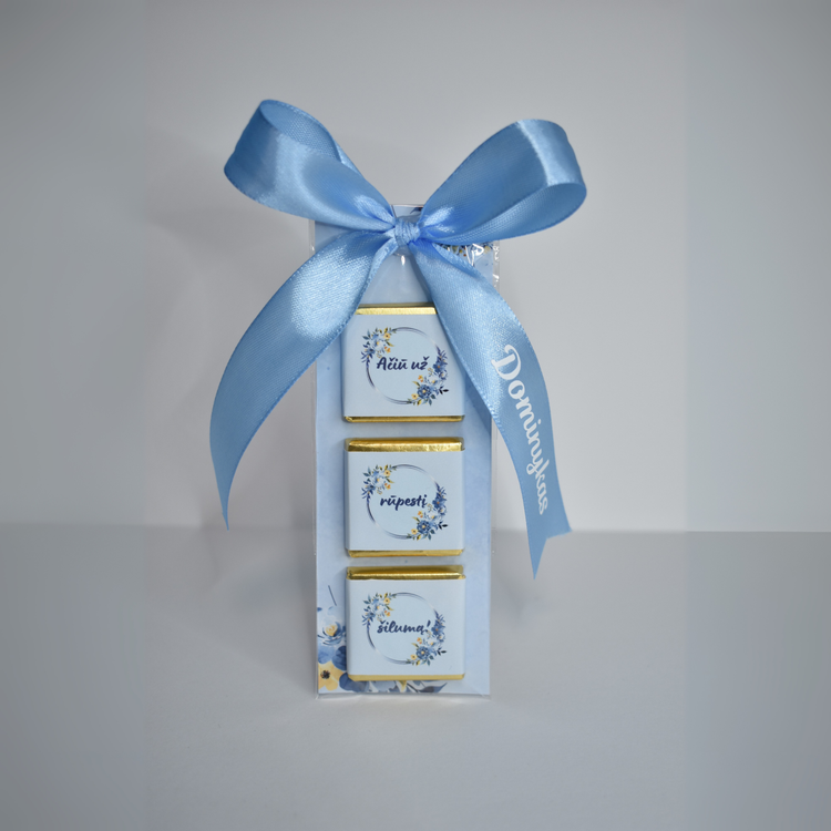 Šokolado plytelės dydis – 3.5 x 3.5cm., sveria 5g.