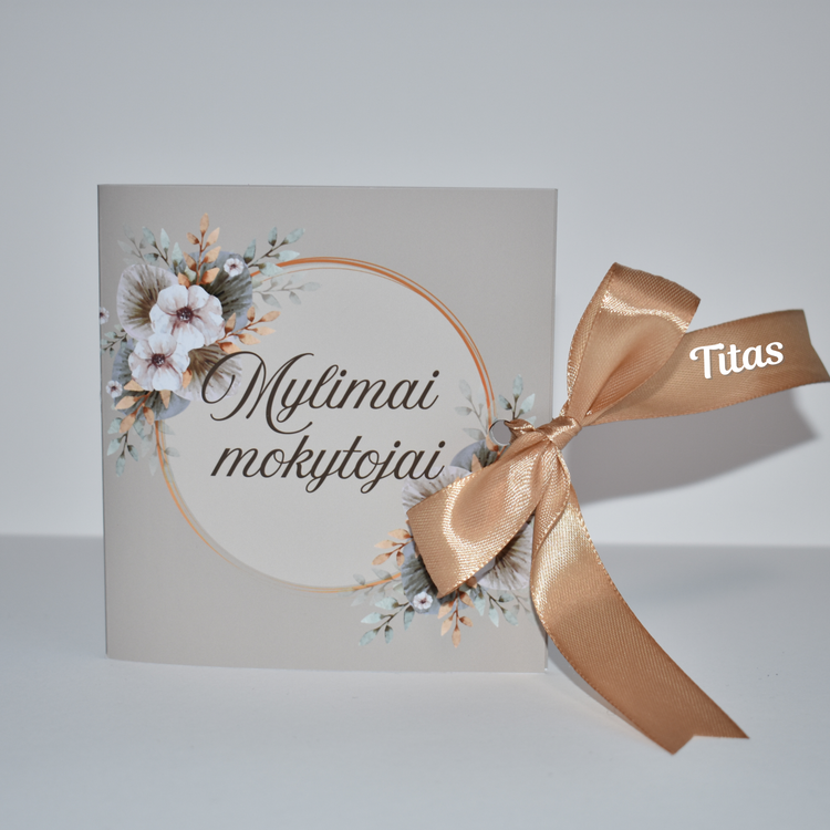 Atvirutės viduje rasite trumpą jautrų eilėraštį ir 4 šokoladukus su padėka už sunkų darbą, suteiktas žinias, kantrybę ir rūpestį.